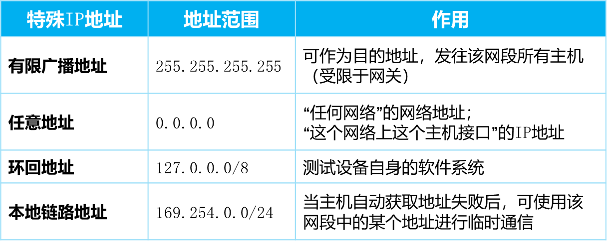 可用地址:可分配给网络中的节点或网络设备接口的地址。