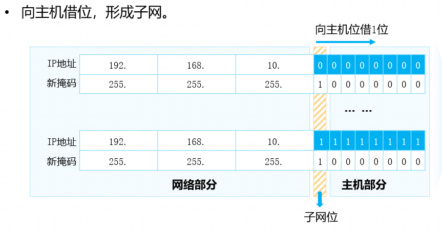网络掩码:区分一个IP地址中的网络部分及主机部分。