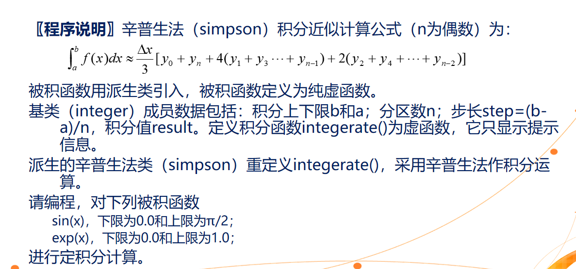 | (1) 【 正确答案: 1=0】 (2)【 正确答案: fun(a)+fun(b)】 (3)【 正确答案: result+4fun(istep+a)】 (4)【 正确答案: result+2fun(istep+a)】 (5)【 正确答案: result*step/3】 (6)【 正确答案: Base(ra,rb,nn)】 (7)【 正确答案: Simpson(ra,rb,nn)】 (8)【 正确答案: sinS(ra,rb,nn)】 (9)【 正确答案: &ss】 (10)【 正确答案: &es】