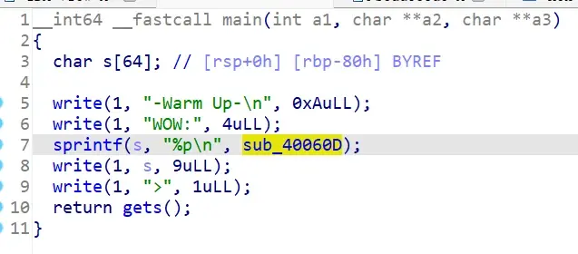 发现函数gets(v5),是栈溢出,且v5占用64个位置