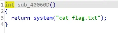 intfunc() { puts("Let's guess the number."); gets(&v1); if ( v2 == 11.28125 ) result = system("cat /flag"); /*$*/ else result = puts("Its value should be 11.28125"); return result; }