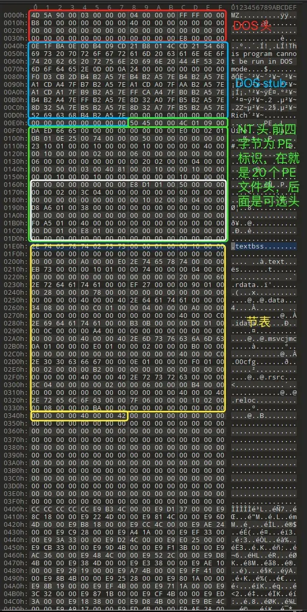 文件开头为0x50 45 00 00也就是ASCII字符的PE